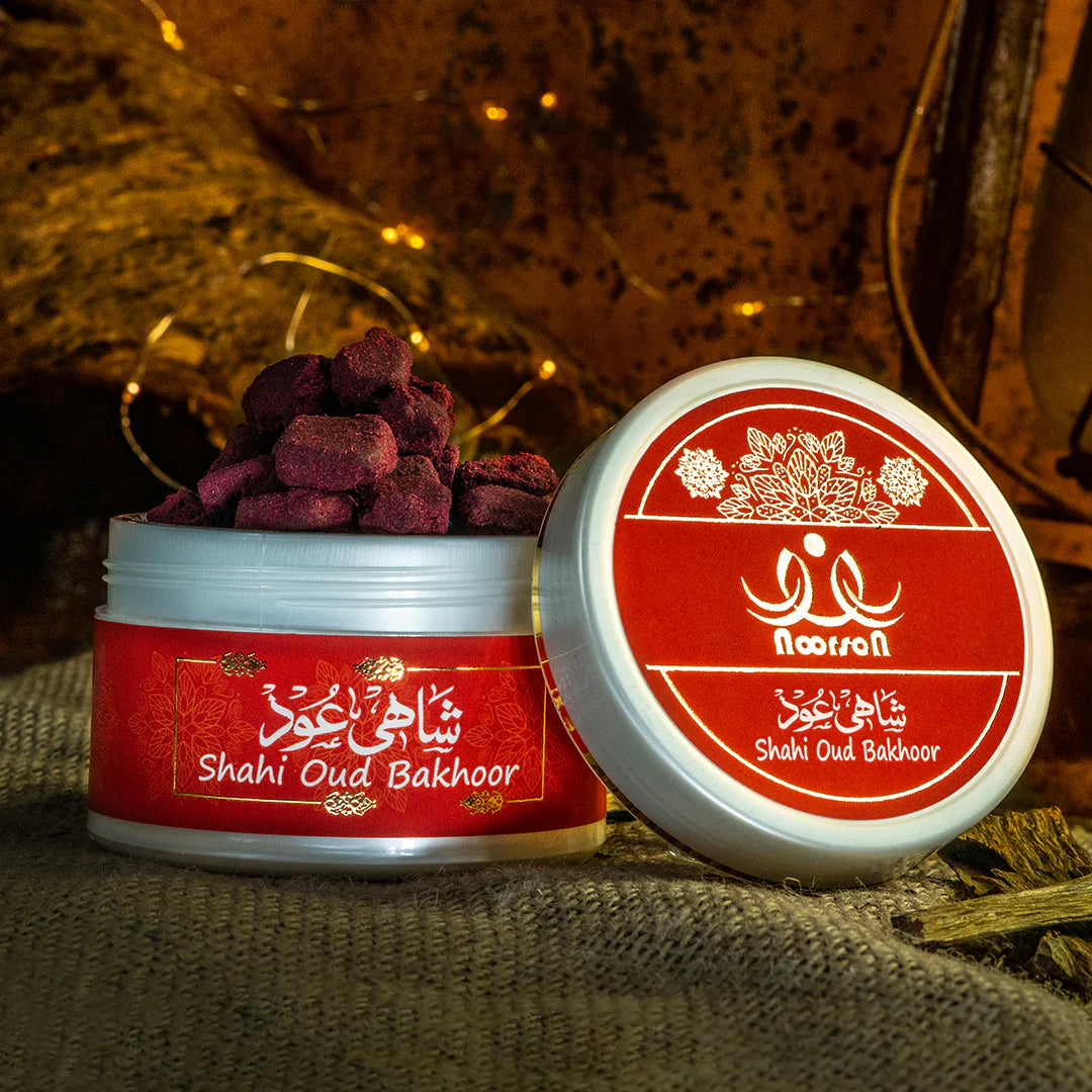 Indulge in the majestic scent of Shahi Oud Bakhoor, a handcrafted incense experience from Noorson. Designed to elevate prayer, meditation, and home ambience, this 40g blend combines rich, oriental oud with sweet floral undertones to create a truly luxurious fragrance.